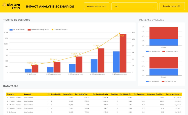At Kia Ora Digital, we’ve developed Revenue Forecast technology that allows you to tap into hidden revenue opportunities online. This revolutionary, award-winning tool allows you to predict future sales based on historical data from your business. It shows you just how much extra revenue you could be making by ranking for certain keywords.